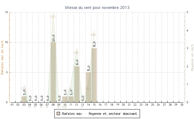 | min | max | moy | Vitesse (rafales) | Secteur | ||